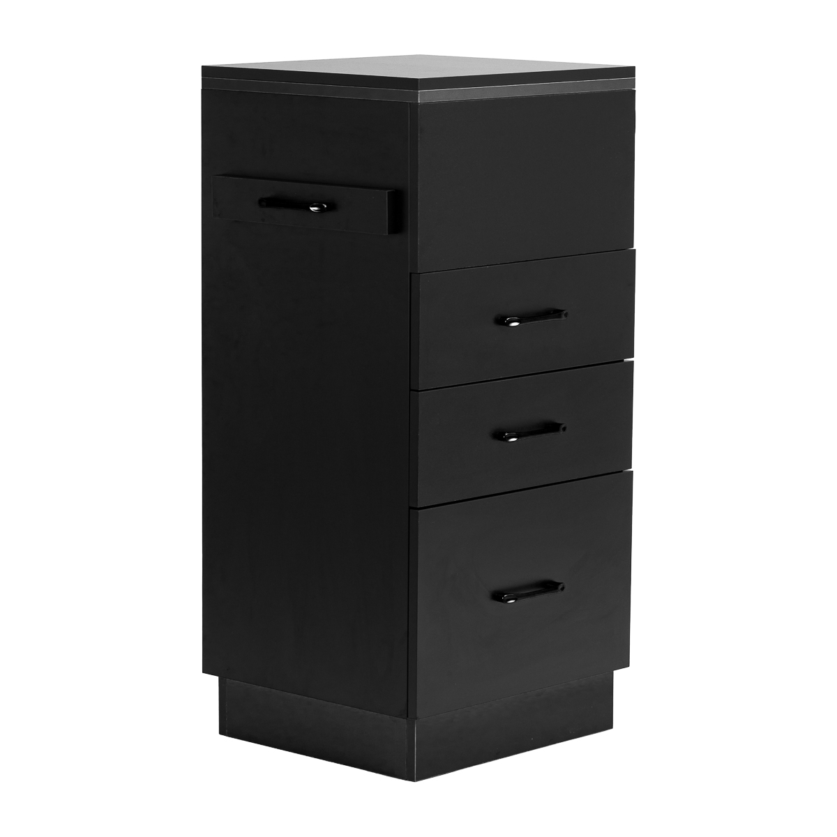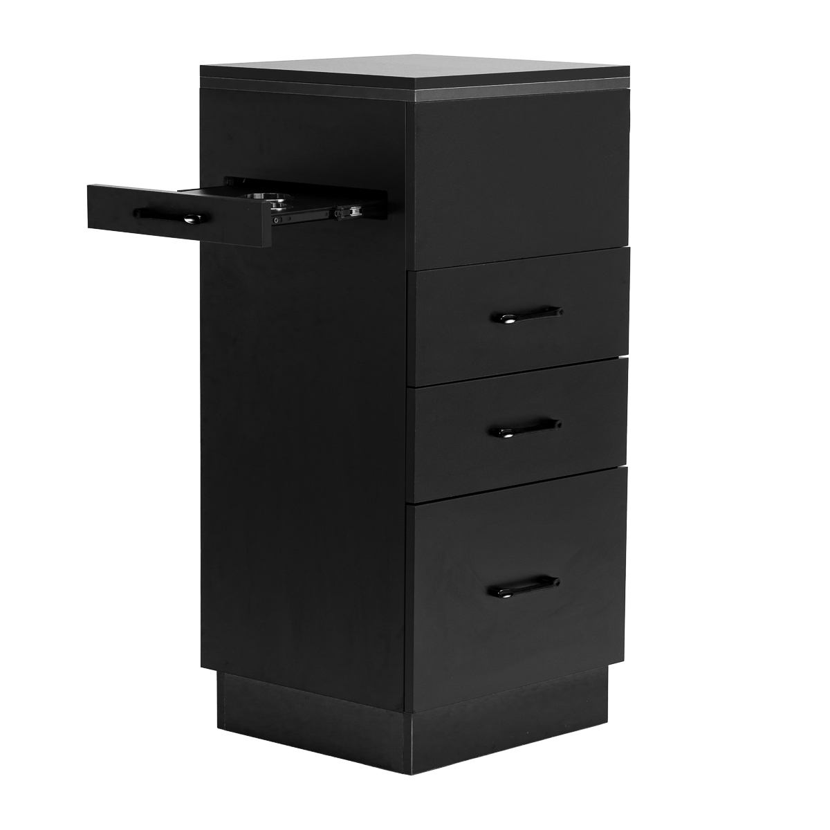 Die Kombination aus klassischem Schwarz verleiht dem Assistenten einen modernen, prestigeträchtigen Charakter, der sowohl zu minimalistischen als auch zu ausdrucksstärkeren Inneneinrichtungen passt. Die solide Konstruktion sorgt für Stabilität, und die glatte Oberfläche erleichtert die Reinigung. Die schwarzen Griffe betonen nicht nur das elegante Design, sondern ermöglichen auch ein komfortables Öffnen aller Schubladen. Eine praktische Lösung für Salons, in denen Ordnung, schneller Zugriff auf Werkzeuge und Ästhetik des Arbeitsplatzes wichtig sind.