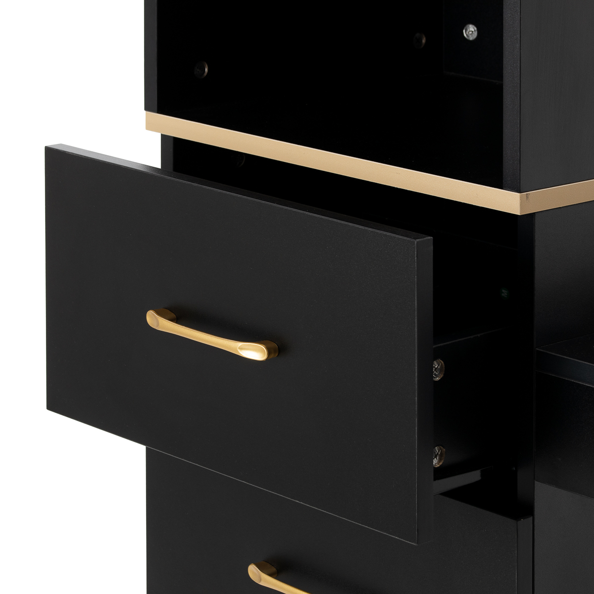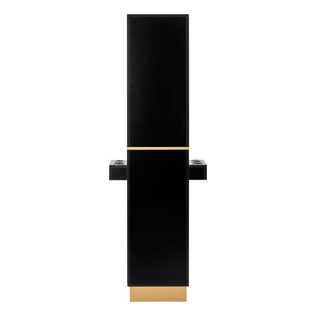 Die Friseurstation Gabbiano Totem ist ein funktionales Einrichtungselement, das mit Blick auf ergonomisches Arbeiten und eine übersichtliche Arbeitsplatzorganisation entworfen wurde. Das Modell unterstreicht den professionellen Charakter des Interieurs und unterstützt eine effiziente Arbeitsplatzorganisation. Die minimalistische Form in Schwarztönen, unterbrochen von goldenen Details, verleiht dem Möbelstück ein elegantes und luxuriöses Aussehen, das sich perfekt in moderne Einrichtungen von Friseursalons und Barbershops einfügt.