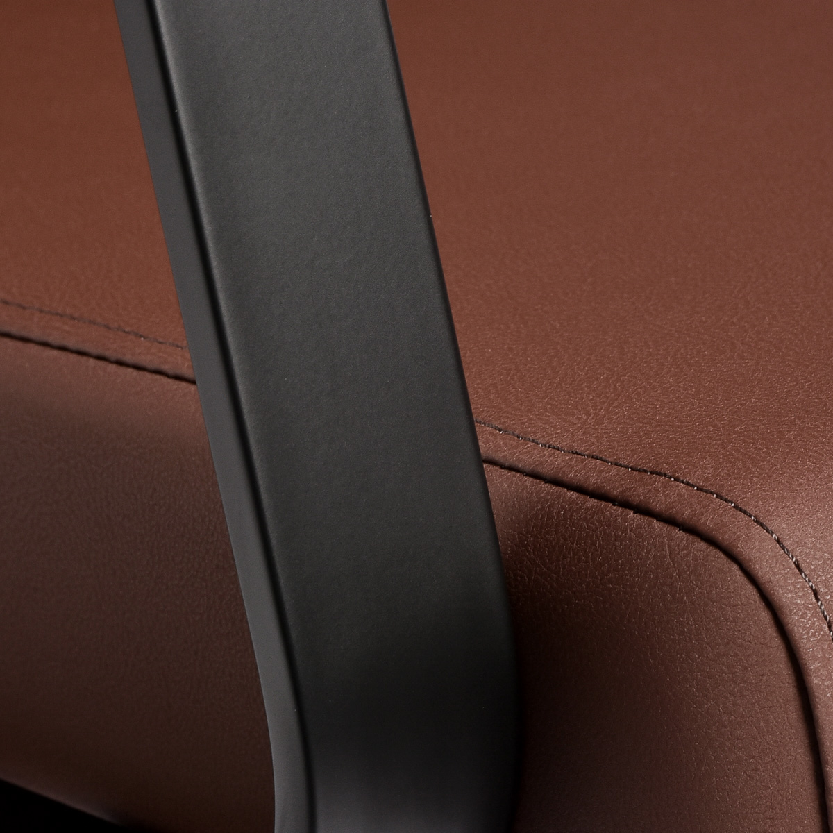 Der profilierte Stuhl bietet eine ausreichende Lendenwirbelstütze und damit einen hohen Nutzungskomfort. Armlehnen aus Metall in Schwarztönen mit geometrischer Form ermöglichen die korrekte Positionierung der Schultern des Kunden. Die Füllung aus strapazierfähigem, verformungsbeständigem Schaumstoff und die Polsterung aus angenehm haptischem Kunstleder sorgen für die Langlebigkeit der Möbel, die einfache Reinigung und den Nutzungskomfort über einen langen Zeitraum. Das originelle, elegante Erscheinungsbild der Waschanlage verleiht den Innenräumen einen einzigartigen Ausdruck. Ein kompletter Satz Armaturen in Schwarztönen ist im Lieferumfang enthalten, einschließlich eines Wasserhahns, eines Duschkopfs und spezieller Schläuche, um einen kompletten Satz Werkzeuge für die Arbeit bereitzustellen.