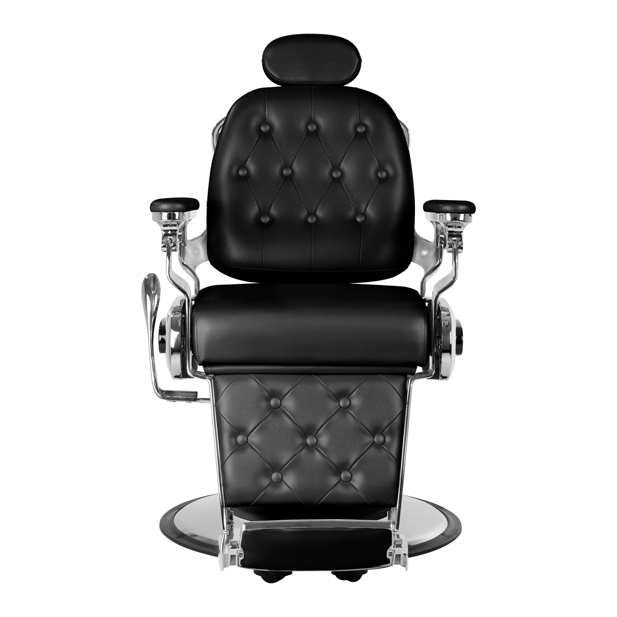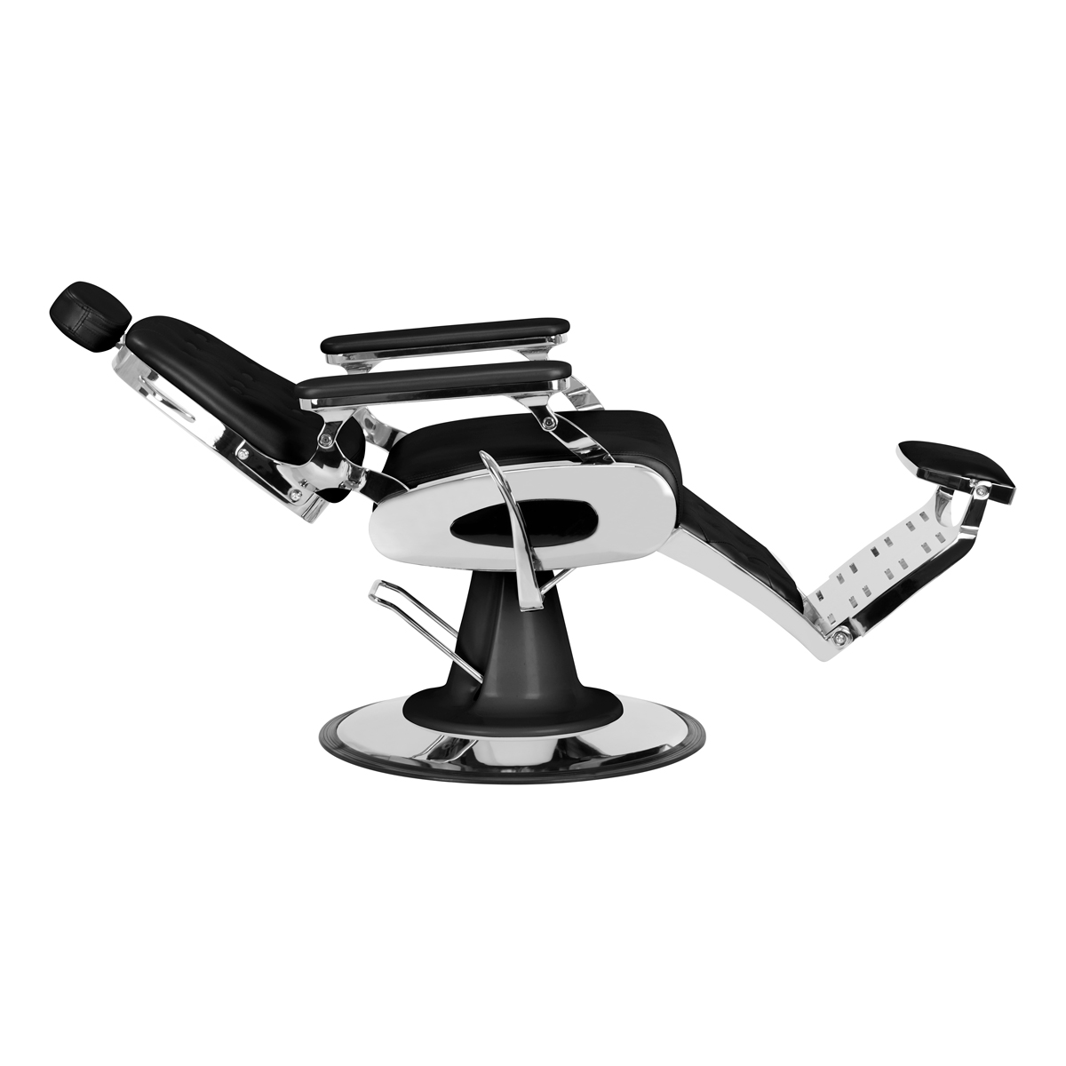 Neuheit in unserem Angebot – Barberstuhl FRANCESCO. Dies ist ein modernes, perfekt gefertigtes Möbelstück mit Motorrad-Details. Es sorgt für maximalen Komfort Ihrer Kunden bei der Behandlung. Neben der Höhenverstellung verfügt der Stuhl über eine einstellbare Rückenlehne und eine verstellbare Fußstütze. Trotz seines geringen Platzbedarfs ist es möglich, den Kunden in eine bequeme, halbliegende Position zu bringen. Der bequeme Sitz ist mit hochwertigem Kunstleder bezogen. Ein breites, verchromtes Gestell sorgt für die Stabilität des Stuhls bei der Behandlung. Ein weiterer Vorteil ist die Möglichkeit, die Kopfstütze einfach zu verstellen. Es ist in Schwarz erhältlich.