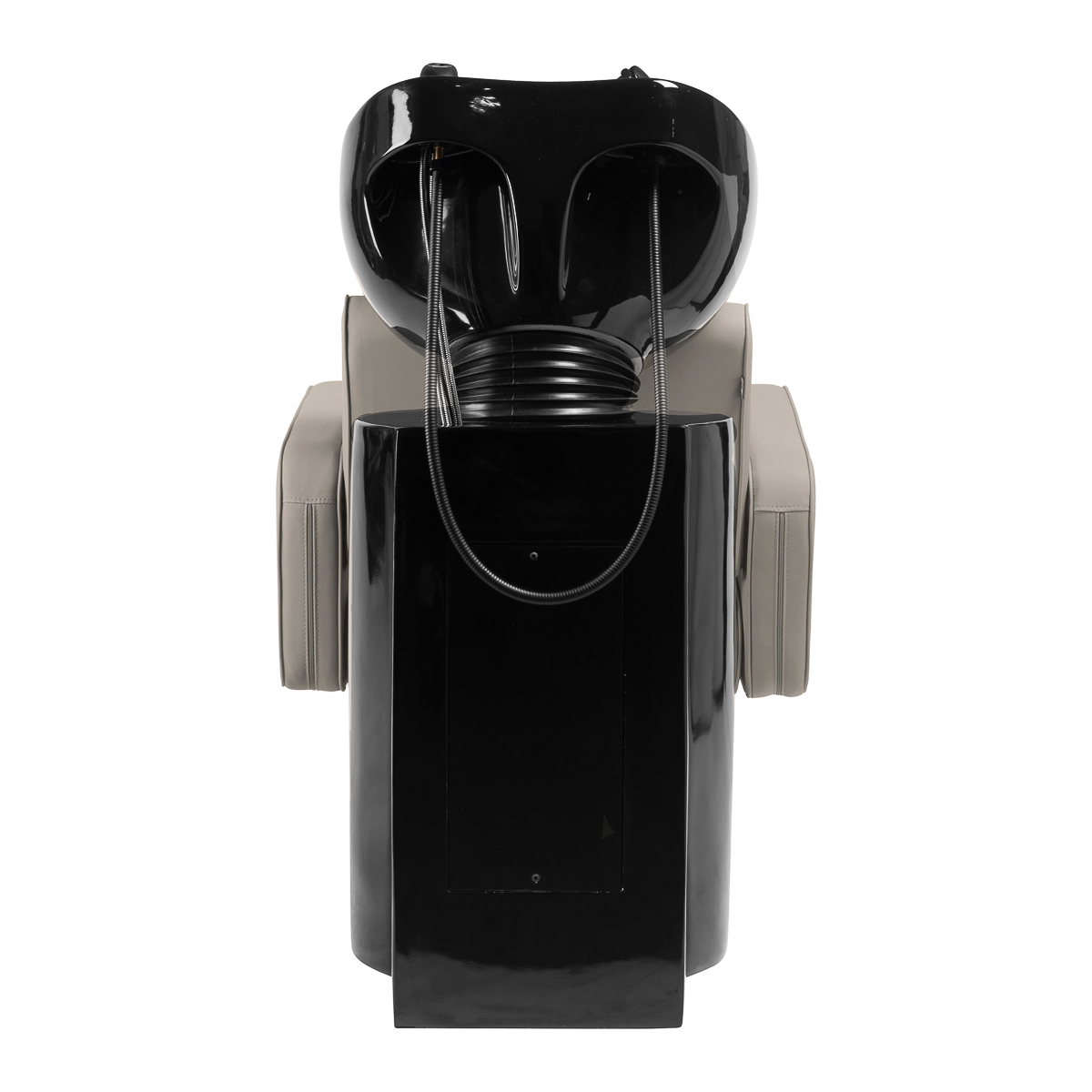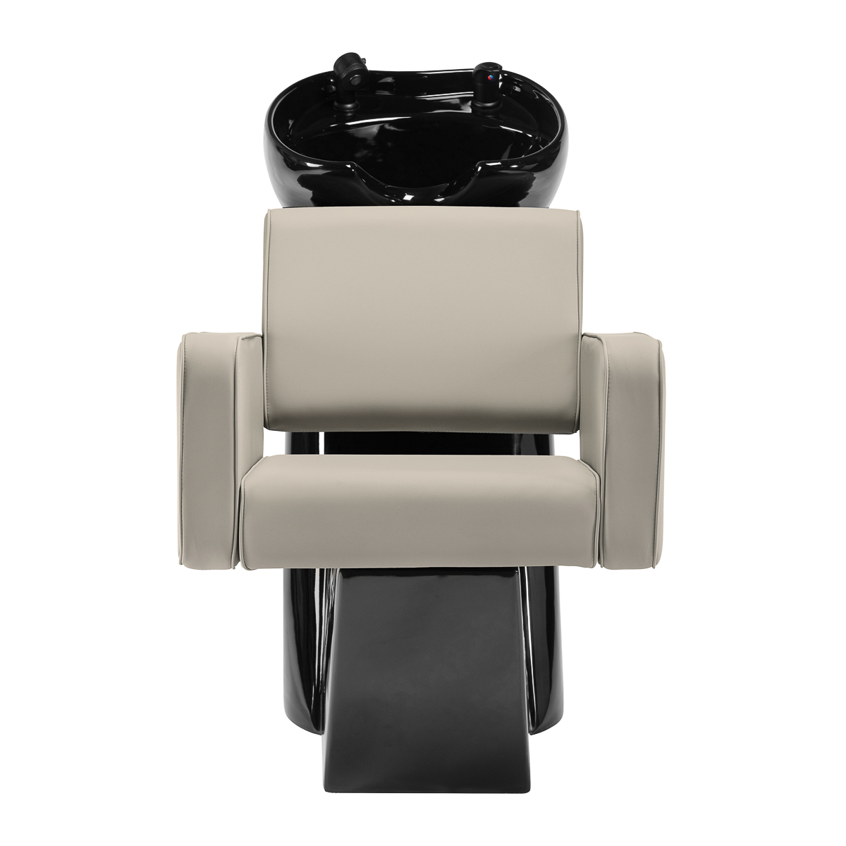 Die tiefe Keramikschale in Schwarztönen minimiert das Spritzen von Wasser und Kosmetika während der Behandlungen. Der einstellbare Neigungswinkel der Schüssel ermöglicht es, ihre Position genau an die Bedürfnisse des Kunden anzupassen. Hergestellt aus strapazierfähigem Material, ist es resistent gegen Verfärbungen, Kratzer und Chemikalien und seine glatte Oberfläche macht es einfach, es sauber zu halten. Der ergonomisch geformte Kragen garantiert eine bequeme Kopfstütze, bietet eine komfortable Kopfstütze, während die schwarze Kunststoffauflage das Kältegefühl bei Kontakt mit Keramik beseitigt.