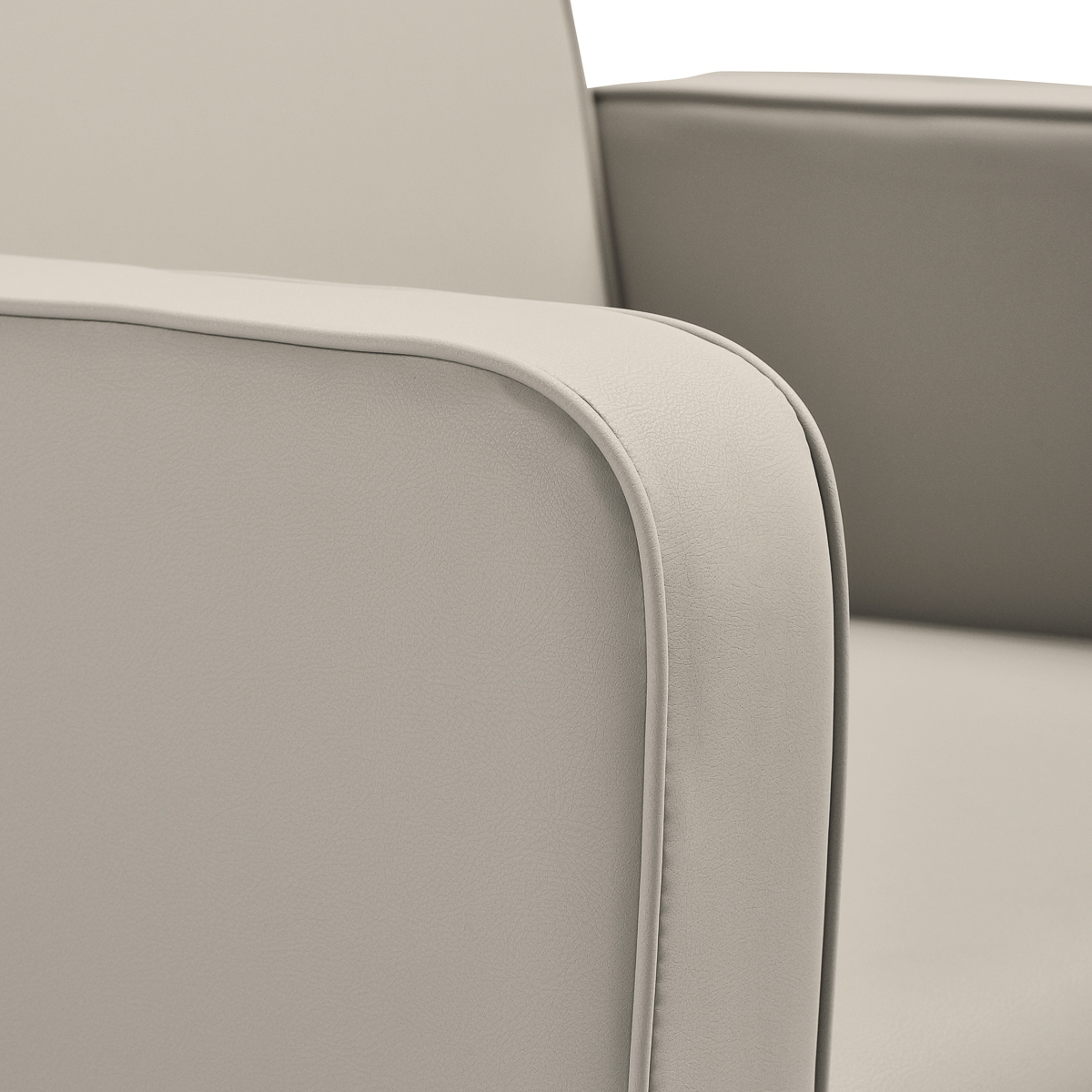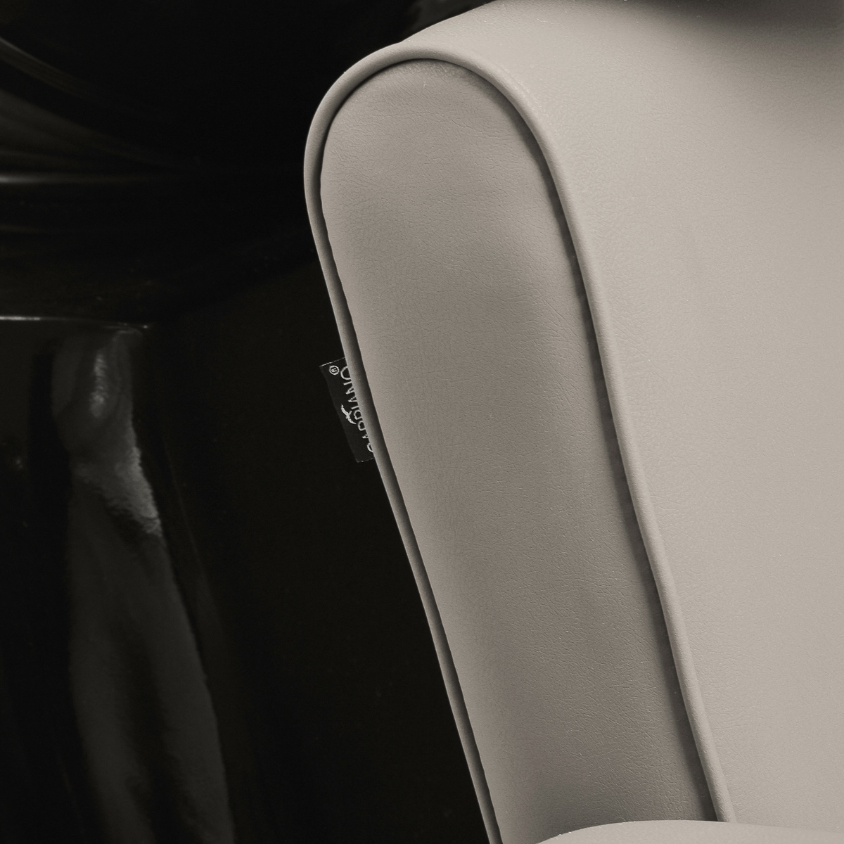 Der geometrische Stuhl mit sanft abgerundeten Kanten vereint Schlichtheit und Komfort in einer modernen Edition. Der quadratische Sitz und die Armlehnen mit sanften Winkeln bilden ein harmonisches Ganzes und garantieren eine bequeme Position während der Behandlungen. Die Rückenlehne mit optimalem Neigungswinkel unterstützt die richtige Haltung und ermöglicht eine vollständige Entspannung. Die Polsterung aus hochwertigem Kunstleder in Grau- und Beigetönen ist abriebfest und leicht zu reinigen. Die geometrische, moderne Form der Möbel unterstreicht den eleganten Charakter der Friseurwaschbecke und fügt sich stimmig in die Saloneinrichtung ein. Komplette Armaturen mit mattem Finish in Schwarztönen sind im Lieferumfang enthalten, darunter ein Wasserhahn, ein Duschkopf und spezielle Schläuche, um ein komplettes Set an Werkzeugen für die Arbeit zu gewährleisten.
