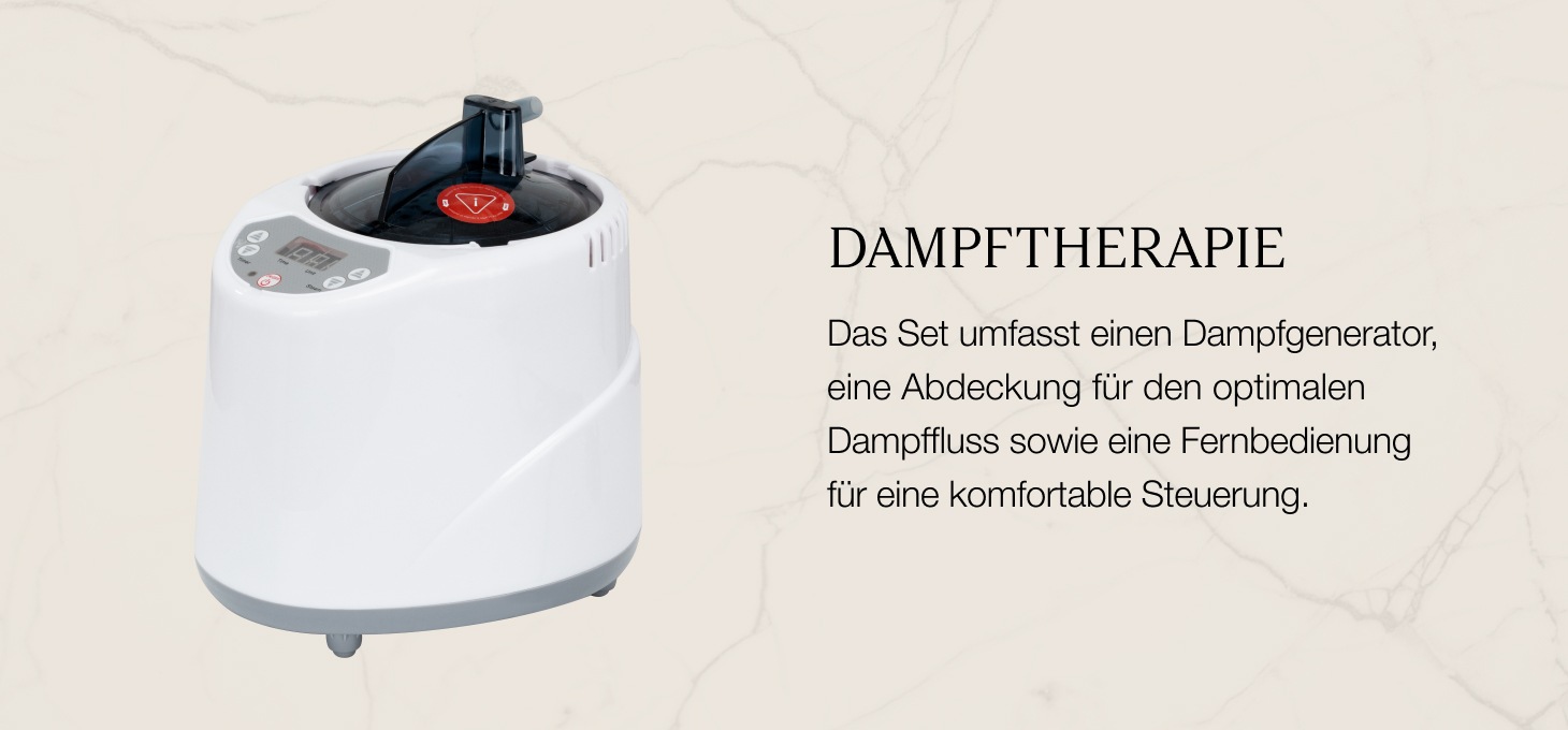 Das Set enthält: eine Wäsche, eine Couch, eine Dampfhaube, einen Dampfgarer, ein zweiteiliges Kissen.