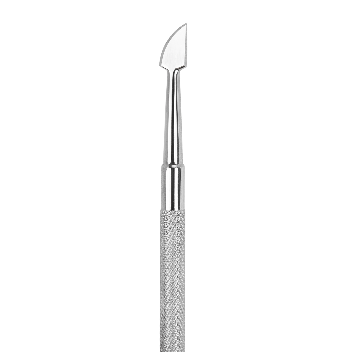 • Flache Klinge entfernt effektiv die Nagelhaut an den Seiten des Nagels. Die ergonomische Form erleichtert eine präzise und kontrollierte Arbeit.