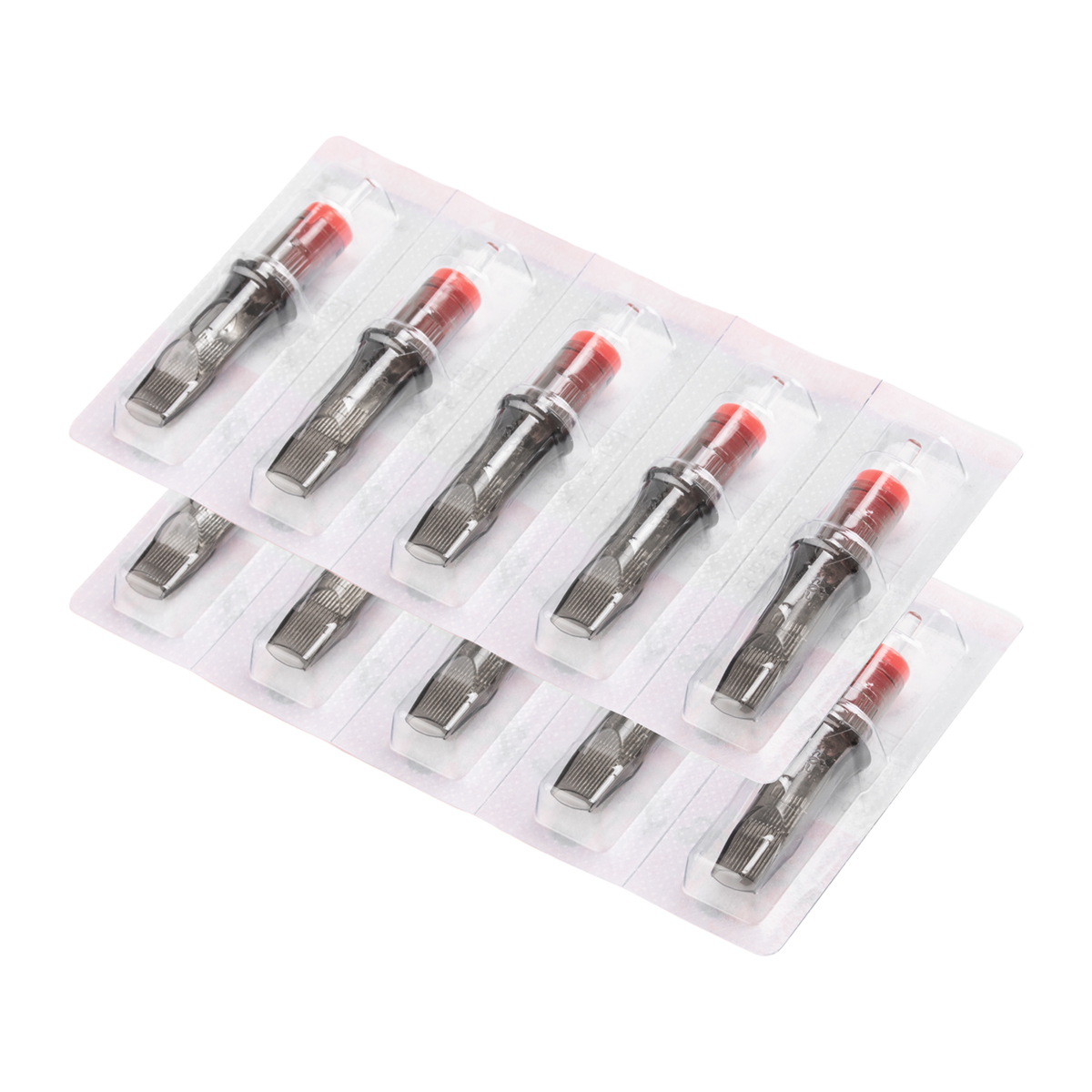Die 21RM Short Taper Cartridge ist für kleine bis mittlere Flächen ausgelegt und bietet starke Farbsättigung sowie effiziente Füllungen. Der Nadeldurchmesser 0,35 mm sorgt für Präzision, während der Short Taper eine entschlossene Pigmentabgabe ermöglicht. Die elastische Membran verhindert Tintenrückfluss in die Maschine. 21RM Tattoo-Cartridge eignet sich ideal für kräftiges Packing.